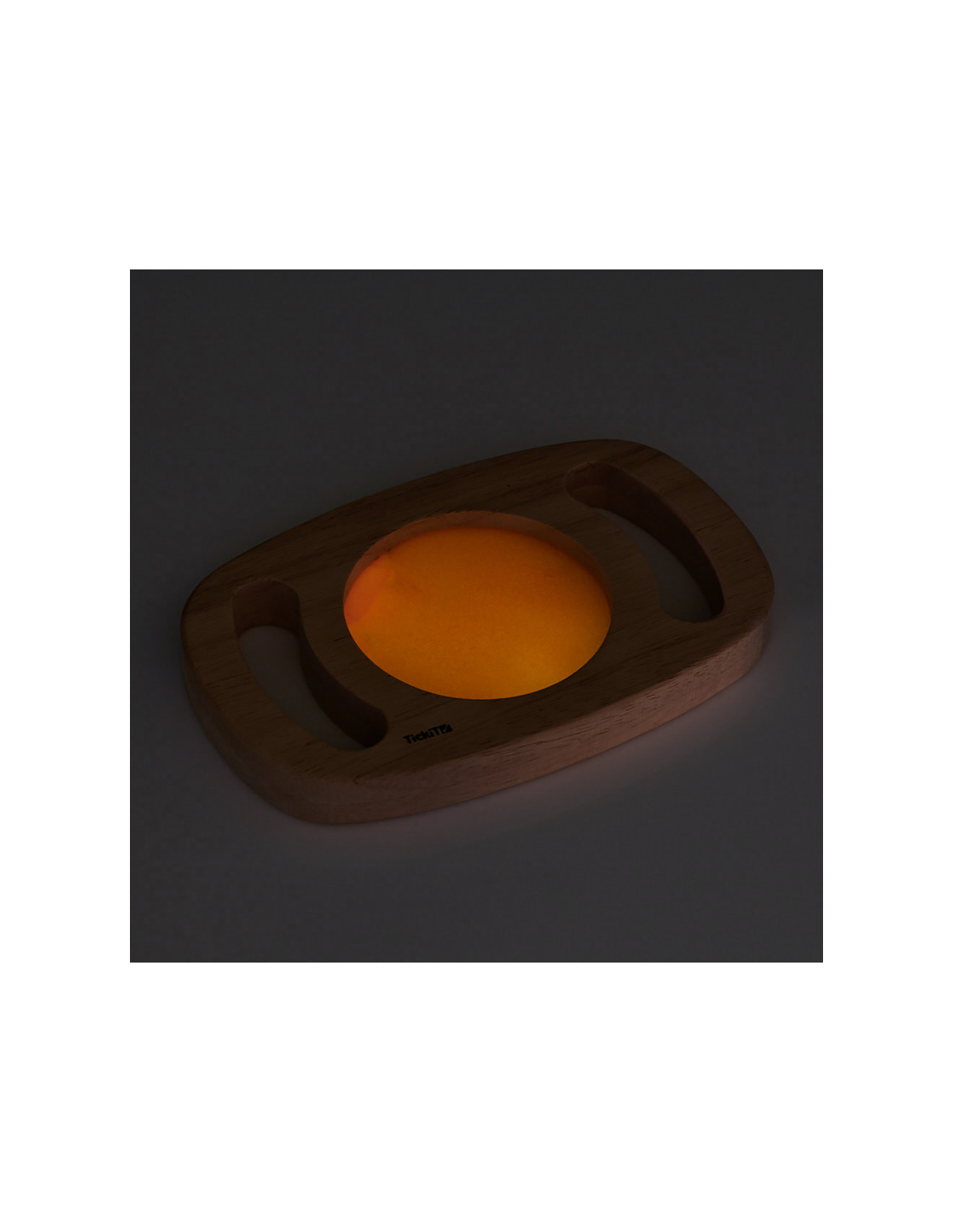 La base in bambù liscia e leggera accoglie forme geometriche morbide in silicone alimentare sicuro, piacevoli al tatto e facili da manipolare.