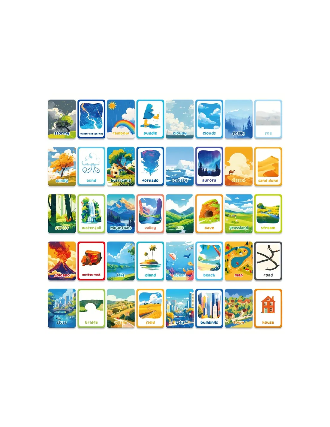 Gioco composto da 216 schede: 108 schede con immagini fotografiche di animali, alimenti e cose più vicine all’ambiente in cui