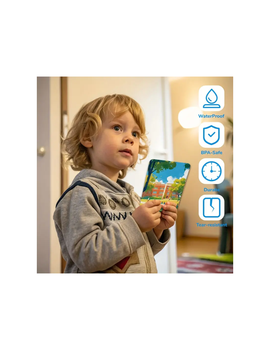 Un gioco composto da 68 schede con fotografie di oggetti, persone o situazioni che riproducono gli ambienti in cui si muovono i bambini per formare 34 coppie di carte che rappresentano concetti opposti.