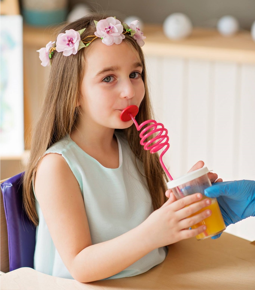 Permette di lavorare in modo differenziato su mascella, labbra e lingua attraverso attività di sorseggio con resistenze e difficoltà variabili.