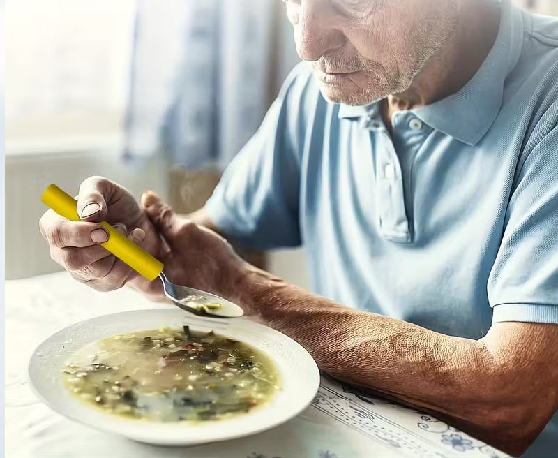 Il set di posate con impugnatura ergonomica è progettato per facilitare il momento dei pasti a chi presenta difficoltà motorie, ridotta forza nella presa o problemi di coordinazione.