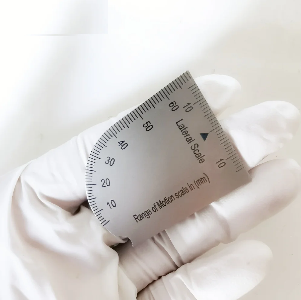 Realizzato appositamente per la misurazione della massima apertura della bocca durante l'esame dei movimenti e della dinamica mandibolare facendo riferimento al margine degli incisivi superiori ed alla linea ideale dell'overbite degli incisivi superiori su quelli inferiori.