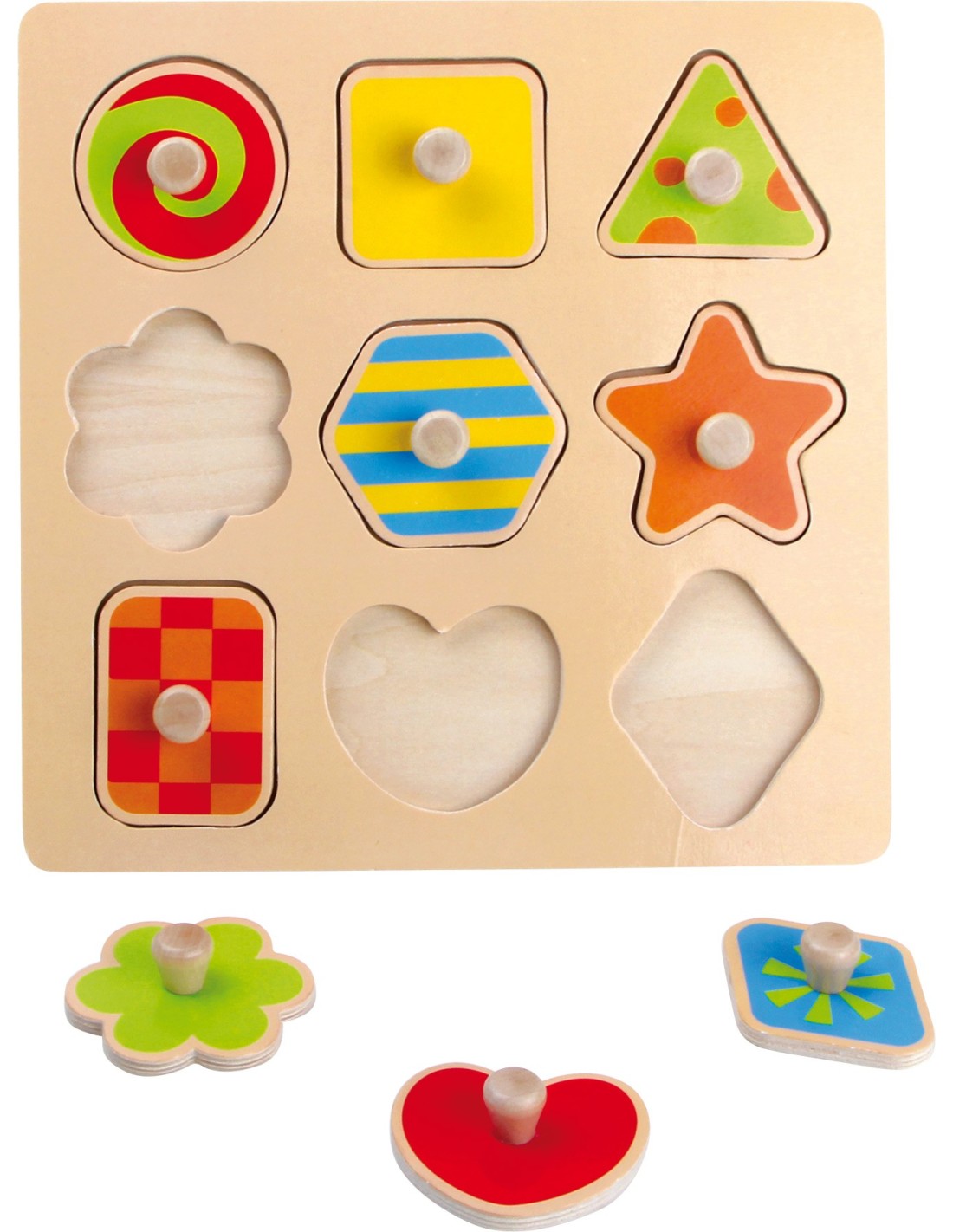 Con questo dado in legno il bambino imparerà giocando a riconoscere colori e forme.