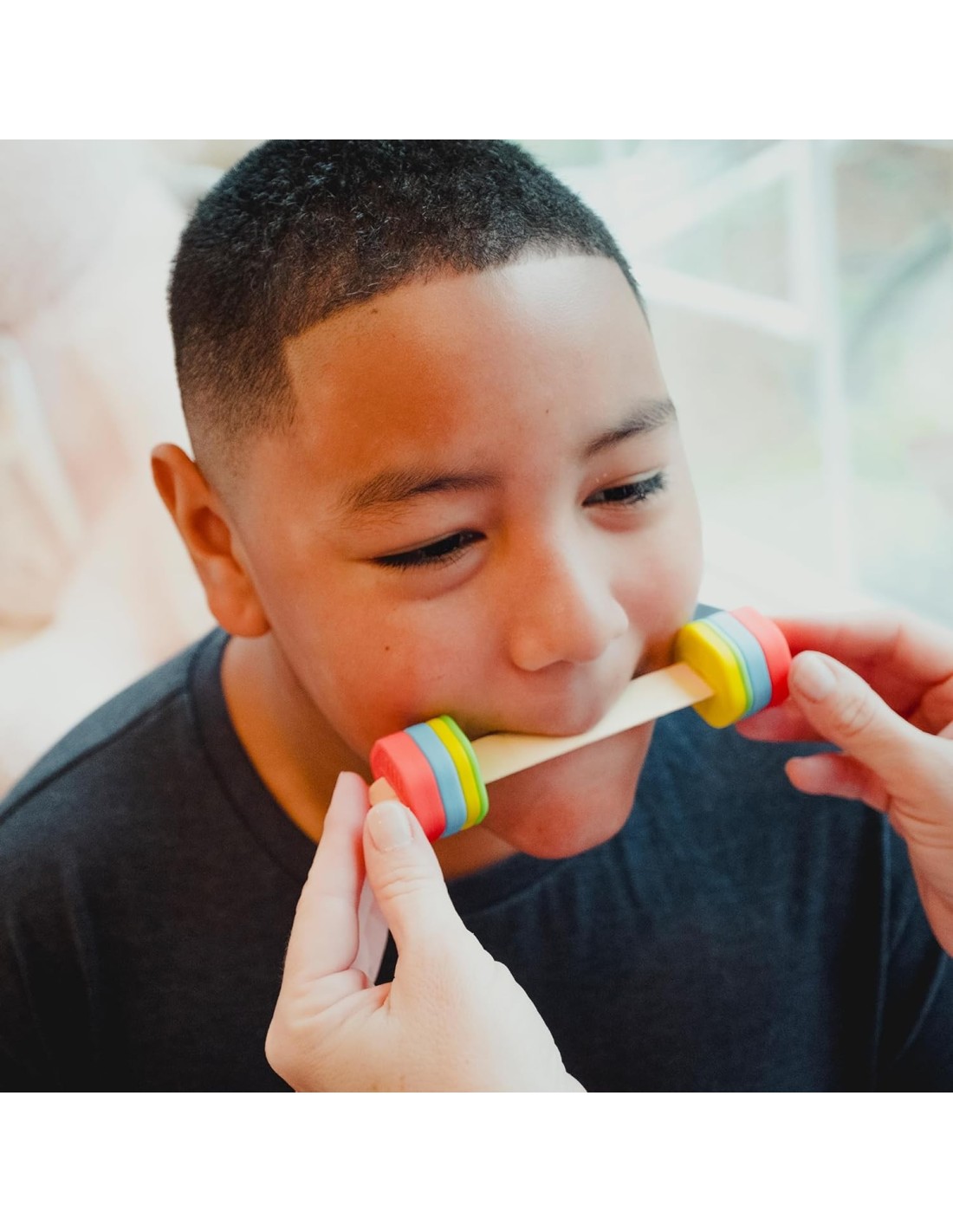 Il dispositivo ProBarbell™ di ARK è un modo divertente e coinvolgente per lavorare sulla chiusura delle labbra e sulla forza, abilità fondamentali necessarie per un corretto linguaggio e migliorare le abilità di alimentazione.