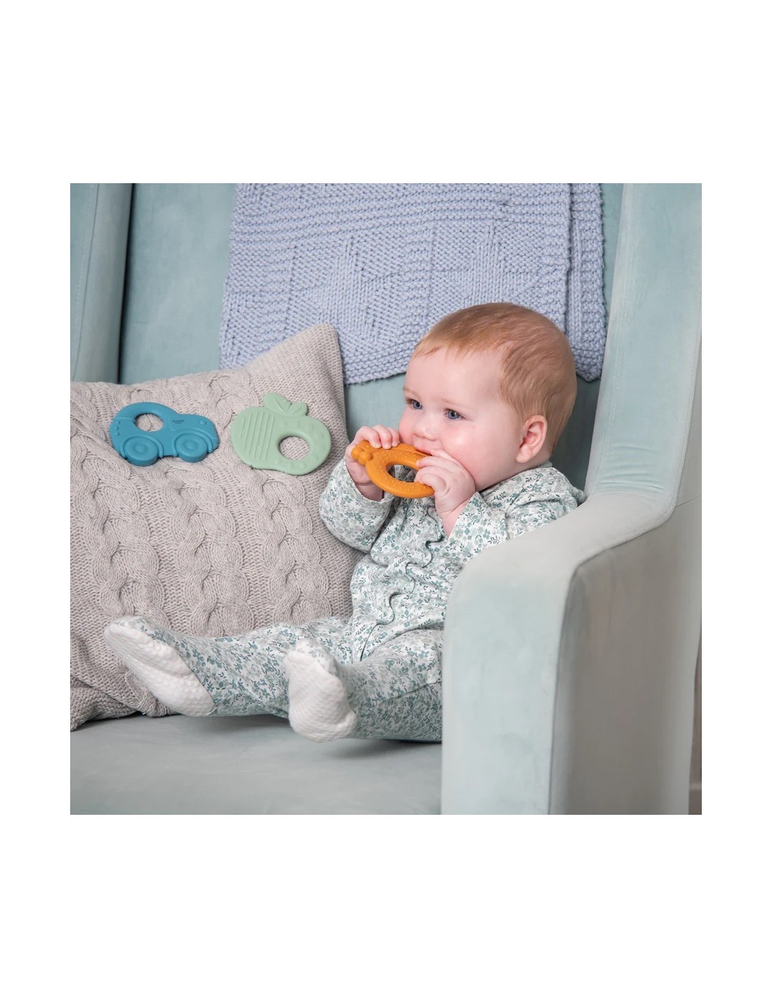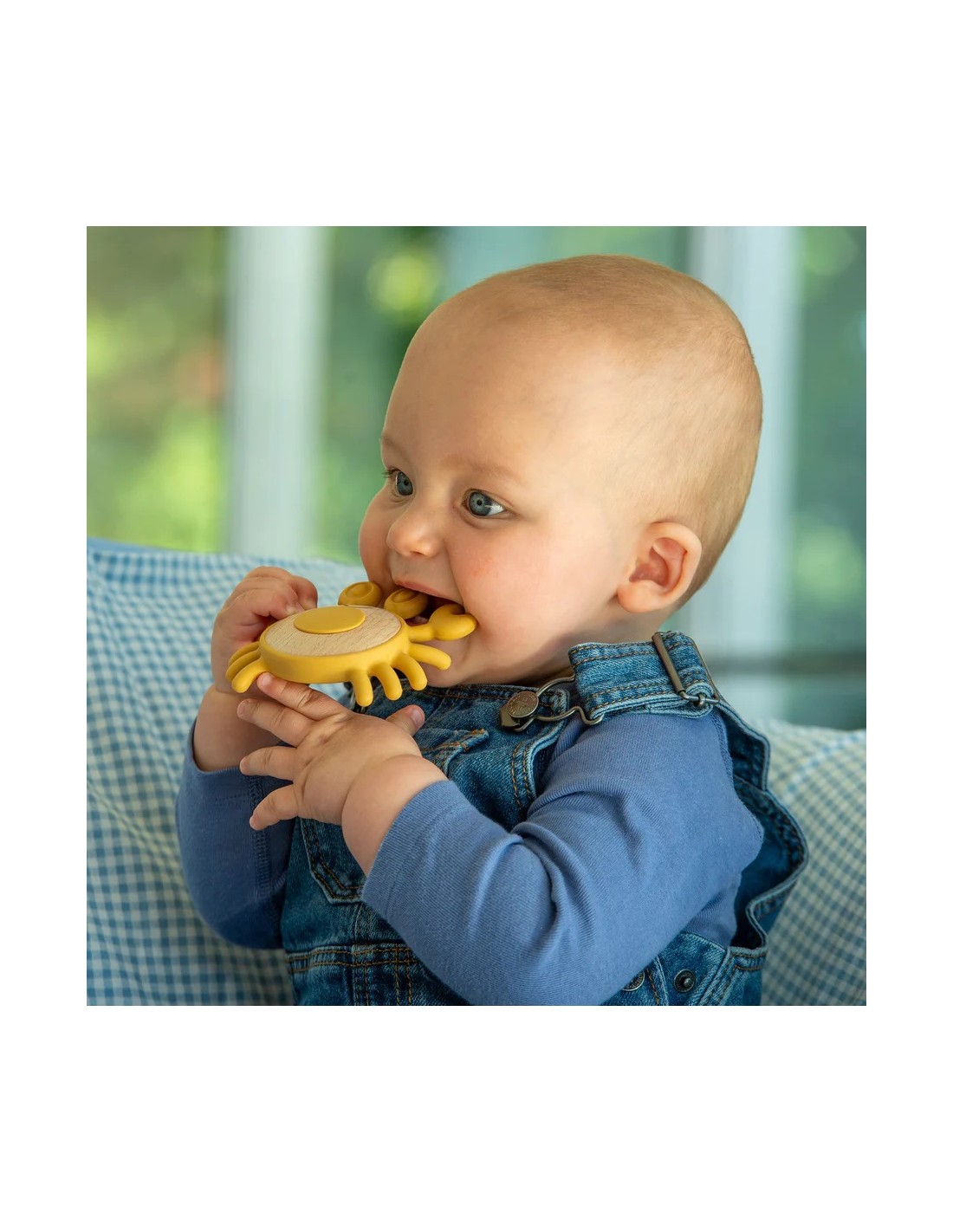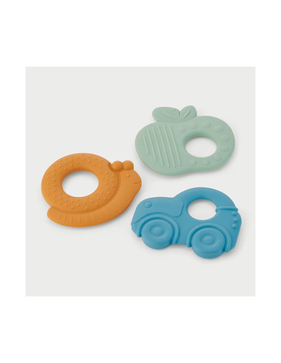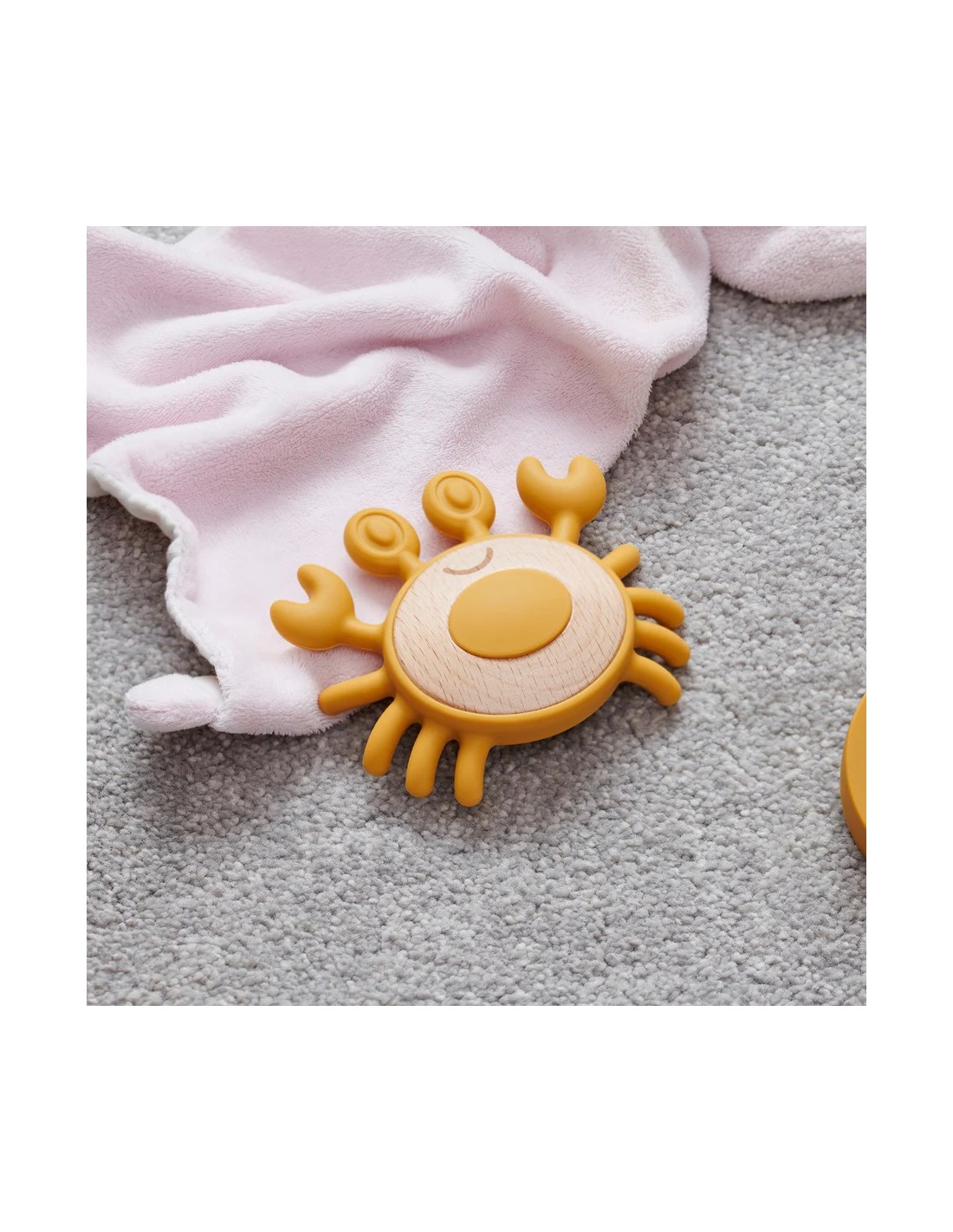 La combinazione di silicone alimentare testurizzato e legno naturale di faggio crea un piacevole contrasto di superfici morbide e lisce che stimola l’esplorazione tattile e lo sviluppo delle abilità motorie.