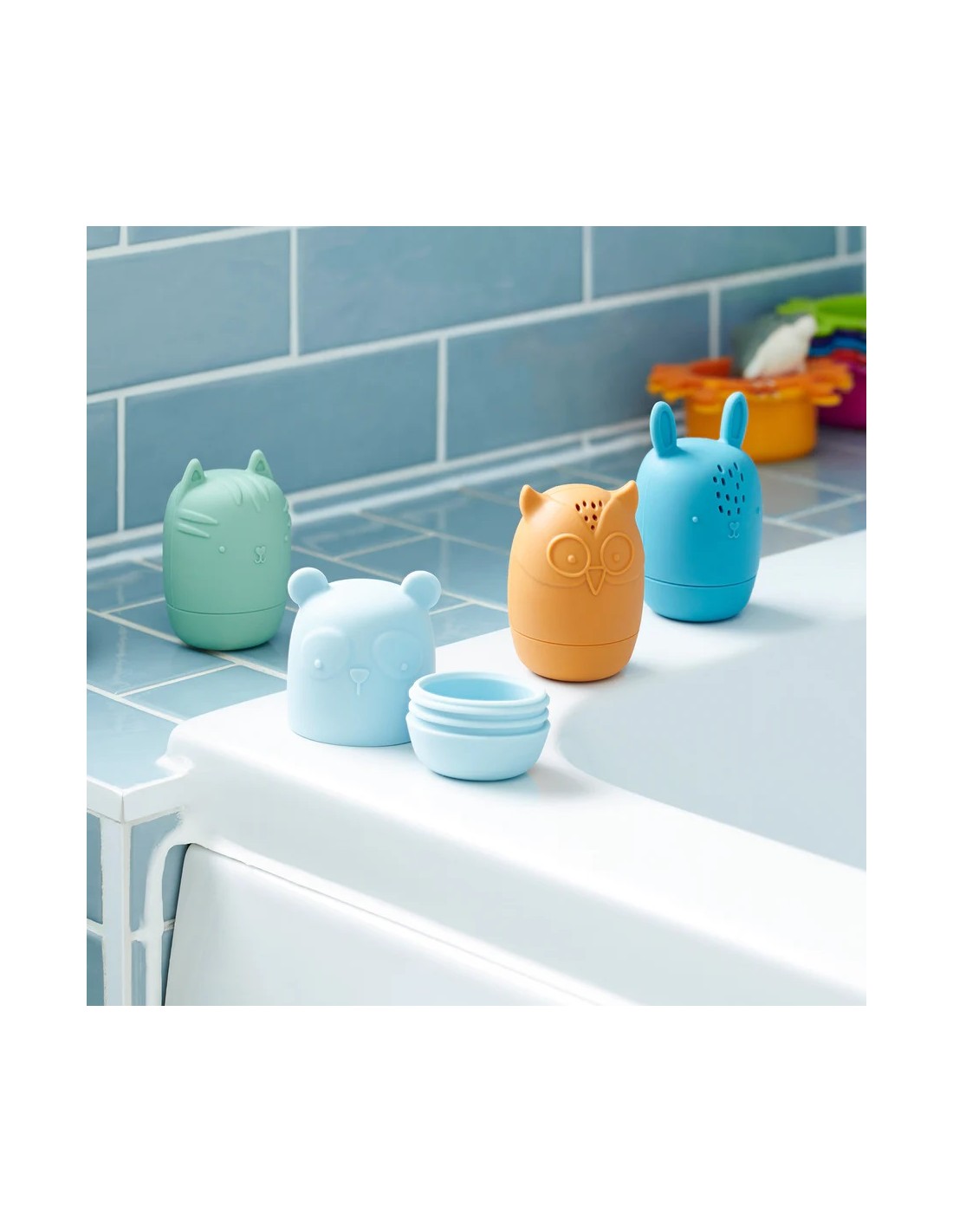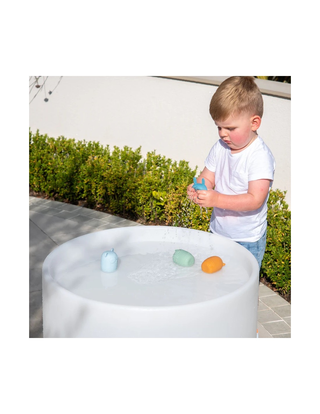 Le basi presentano fori da 1 a 7, utili per attività di conteggio, travaso o giochi con l’acqua. Ogni base è inoltre dotata di un cerchio rialzato che favorisce l’esplorazione tattile e la stimolazione sensoriale.