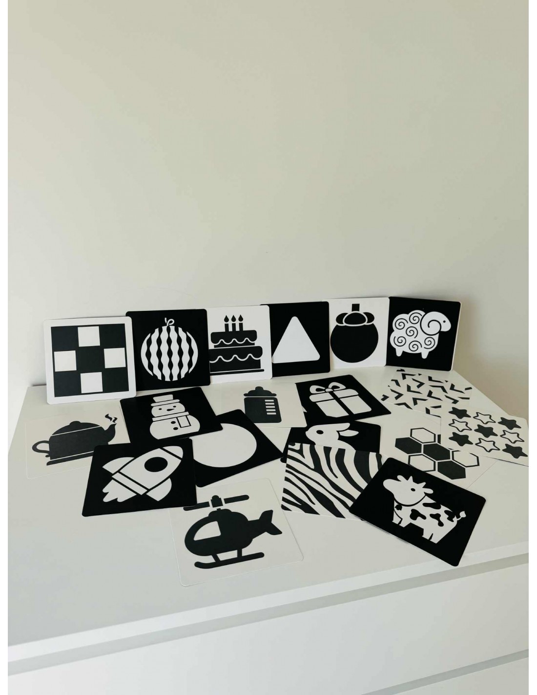 Le Carte stimolo visivo in bianco e nero sono progettate per favorire lo sviluppo visivo precoce nei neonati secondo il Metodo Doman, che sfrutta le immagini ad alto contrasto per stimolare l’attenzione, la concentrazione e le prime capacità cognitive.