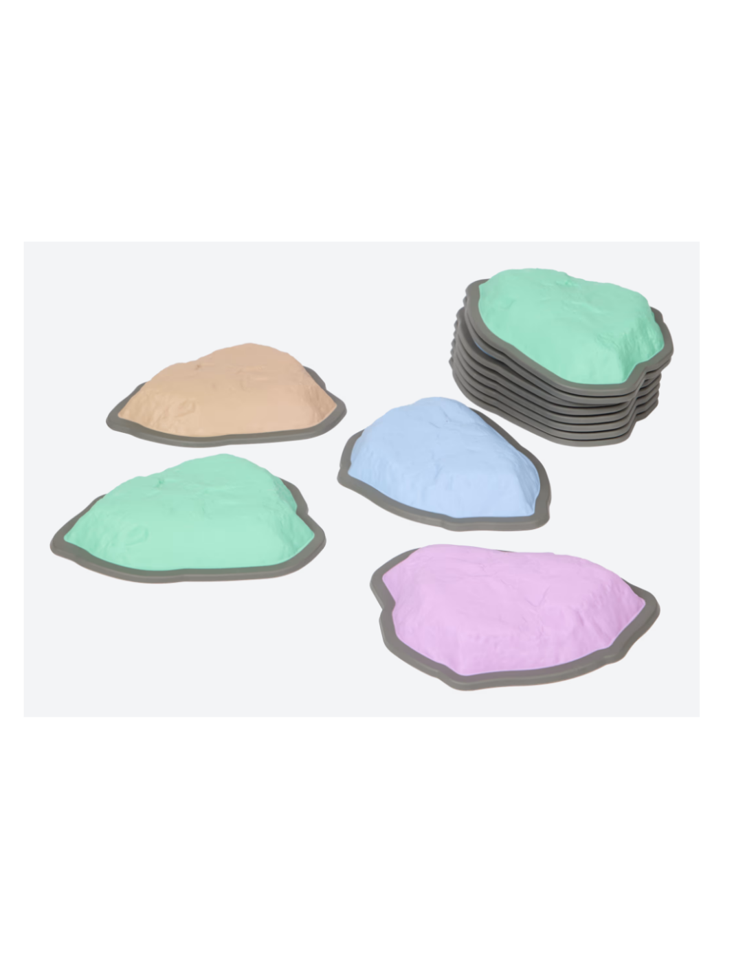 Cinque "colline" in diverse altezze che ispireranno i bambini a saltare da una all'altra! Oltre ad essere divertenti, sviluppano la capacità dei bambini di stimare le distanze e di familiarizzare con le altezze. Design che impedisce agli elementi di ribaltarsi o scivolare grazie al bordo in gomma che proteggere il pavimento.