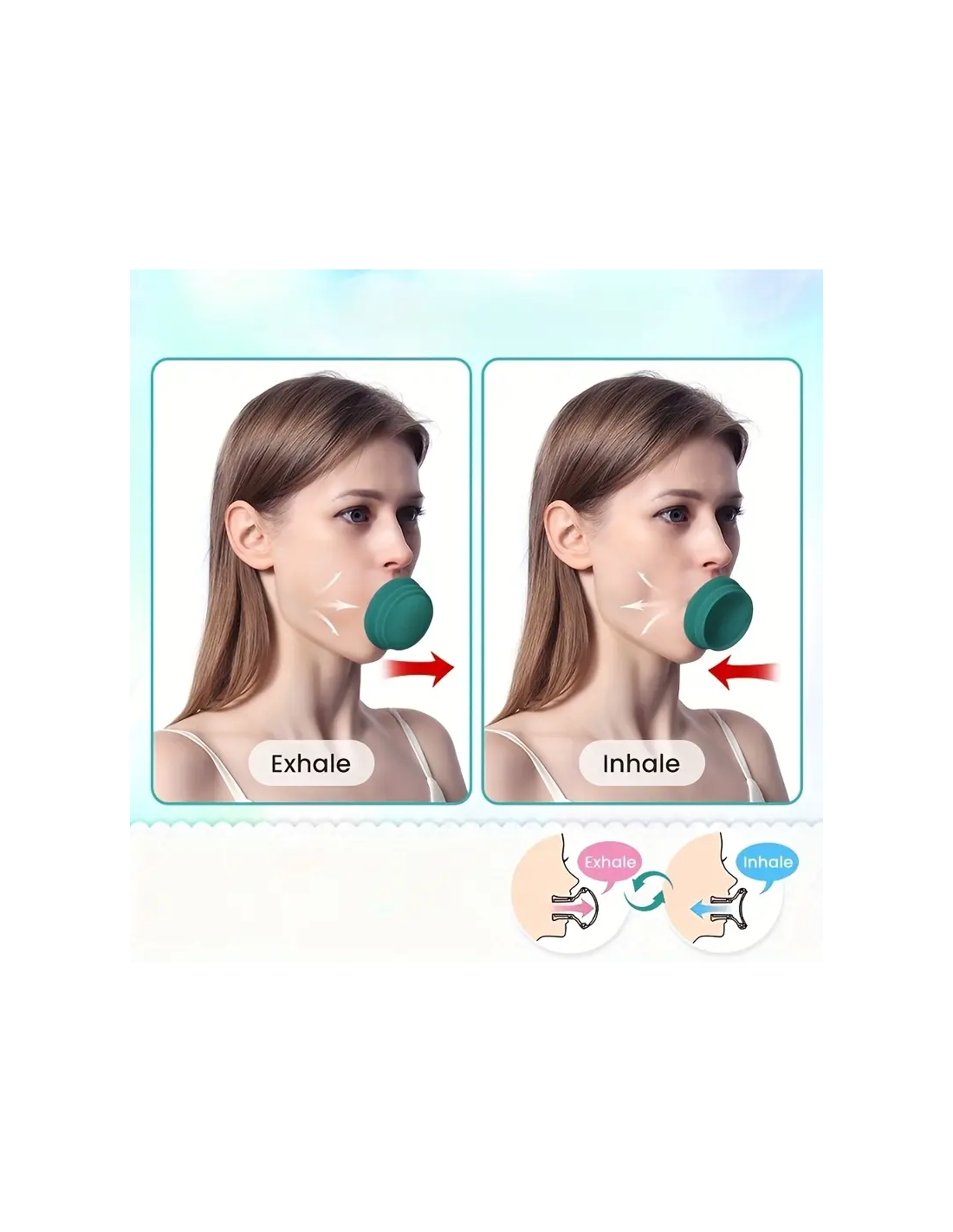 Grazie al suo design ergonomico e alla struttura flessibile in silicone, aiuta a stimolare la muscolatura oro-facciale, migliorando la definizione della linea mandibolare (V-Line) e la tonicità cutanea.