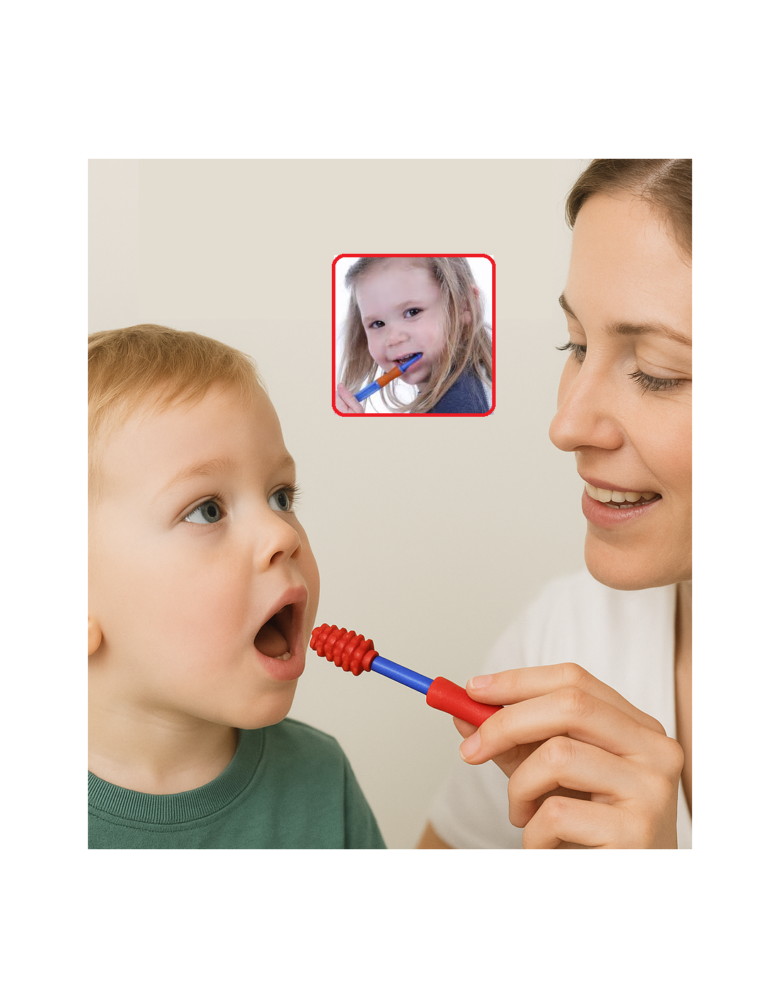 Lo Spazzolino Senso® della Sensory University è un efficace strumento di massaggio e stimolazione sensoriale orale, progettato per supportare bambini con bisogni sensoriali specifici, difficoltà alimentari o comportamenti di mordicchiamento.