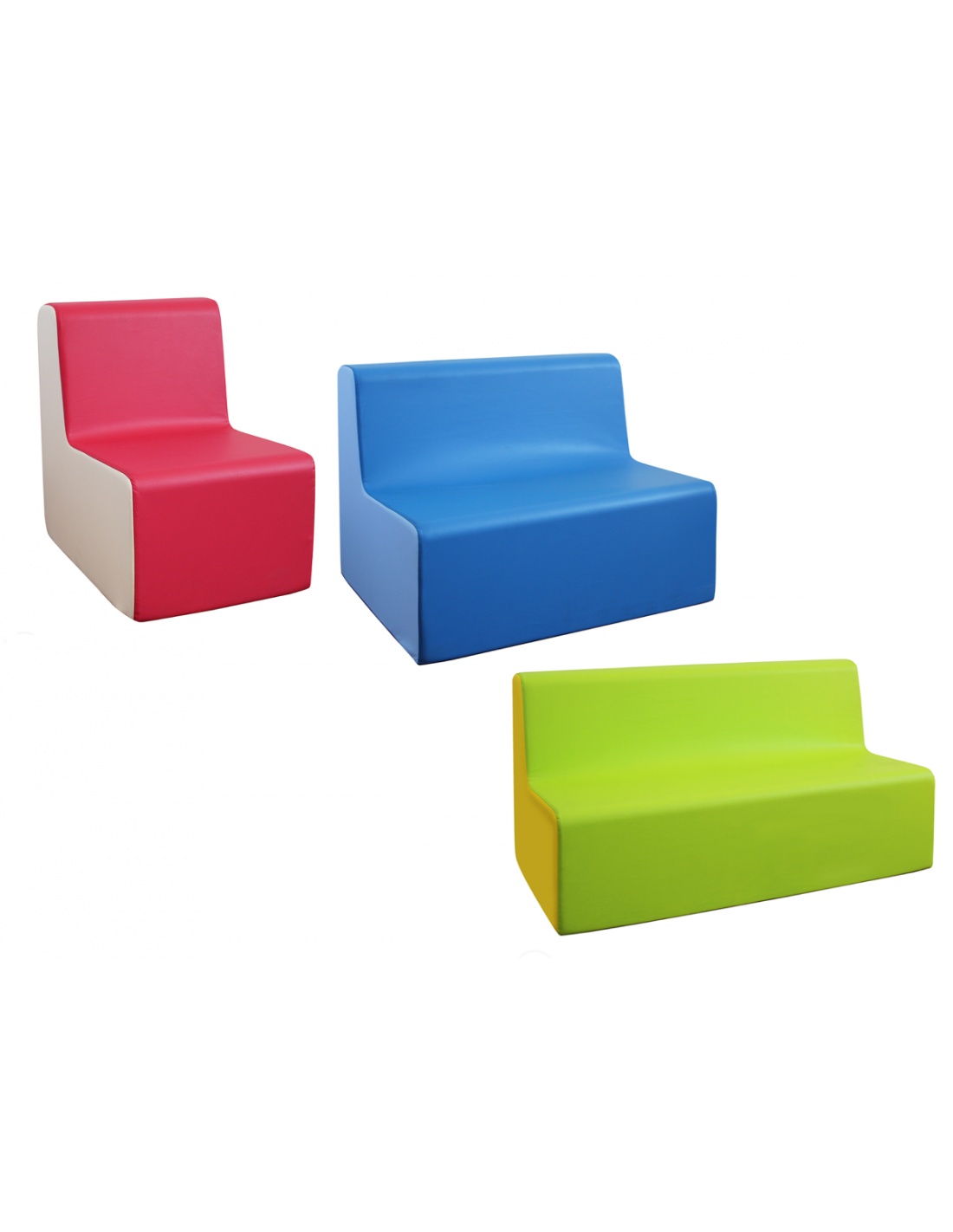 Disponibili in diverse misure (poltroncina, sofà 2 posti e sofà 3 posti), possono essere abbinate tra loro per creare angoli lettura, aree relax o zone gioco sicure e accoglienti.