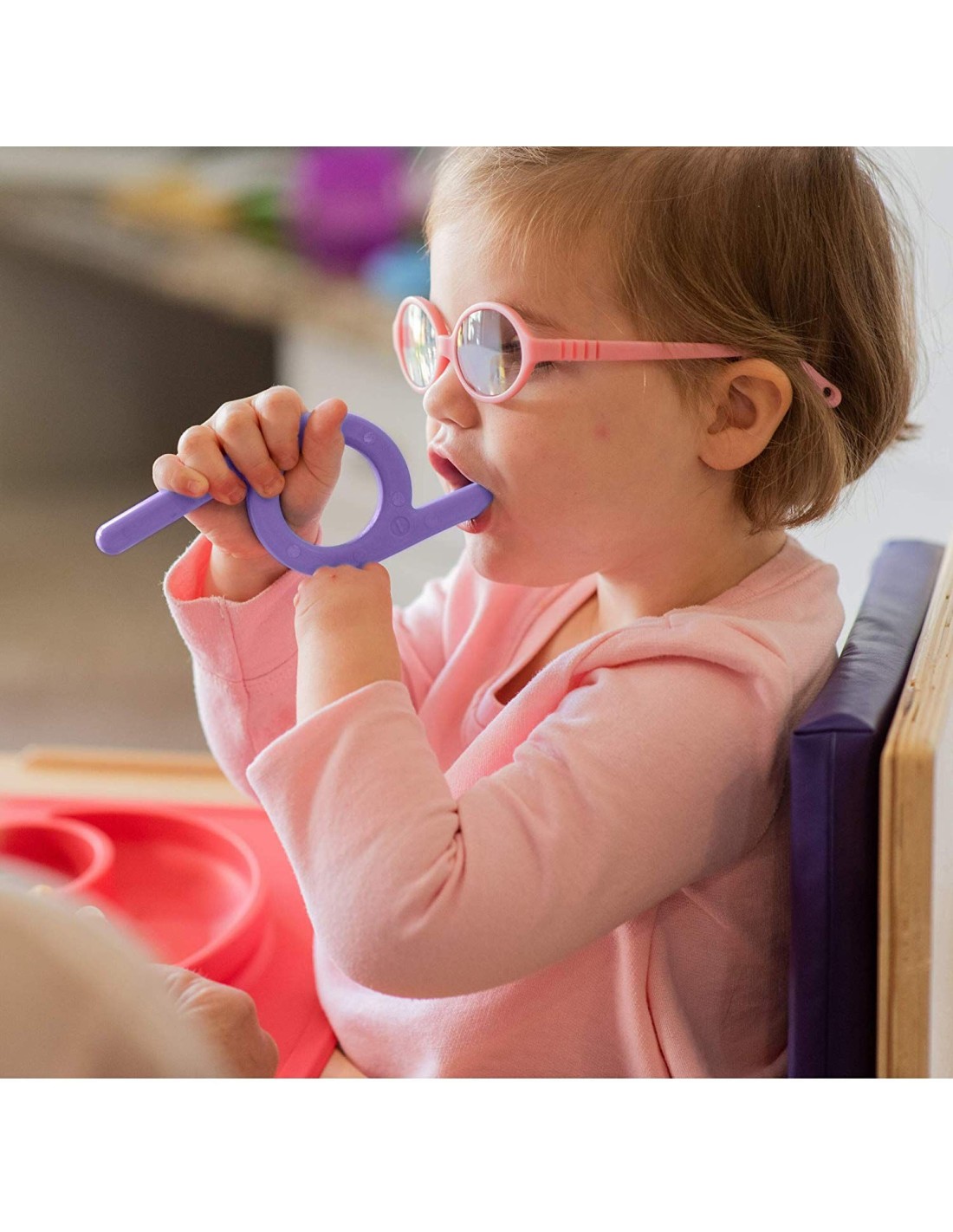 Grazie al suo design ergonomico con impugnatura ad anello e superficie testurizzata, permette ai bambini di esercitare la mandibola e migliorare la coordinazione oro-motoria, riducendo comportamenti orali inappropriati come il mordicchiare o il succhiare oggetti non sicuri.