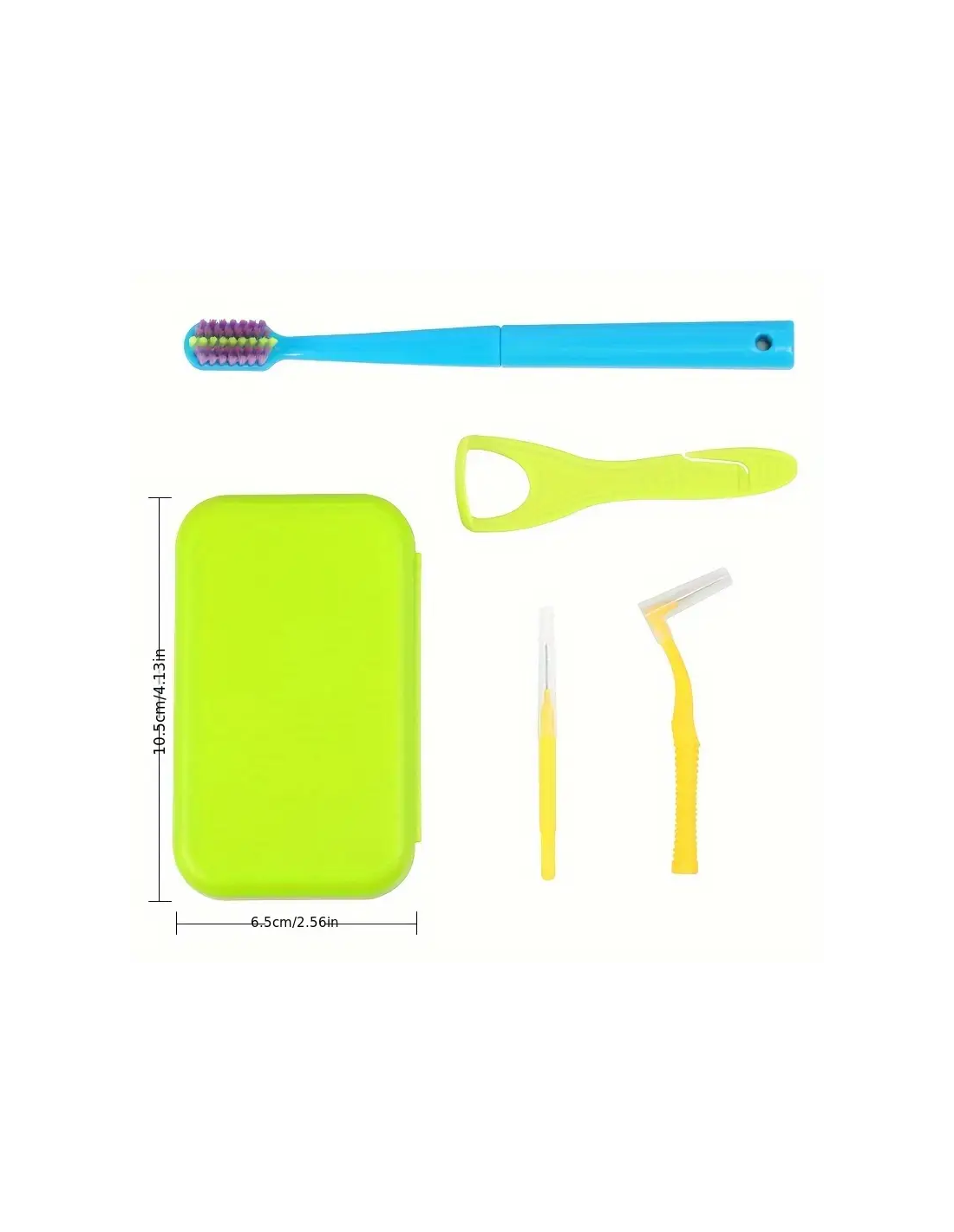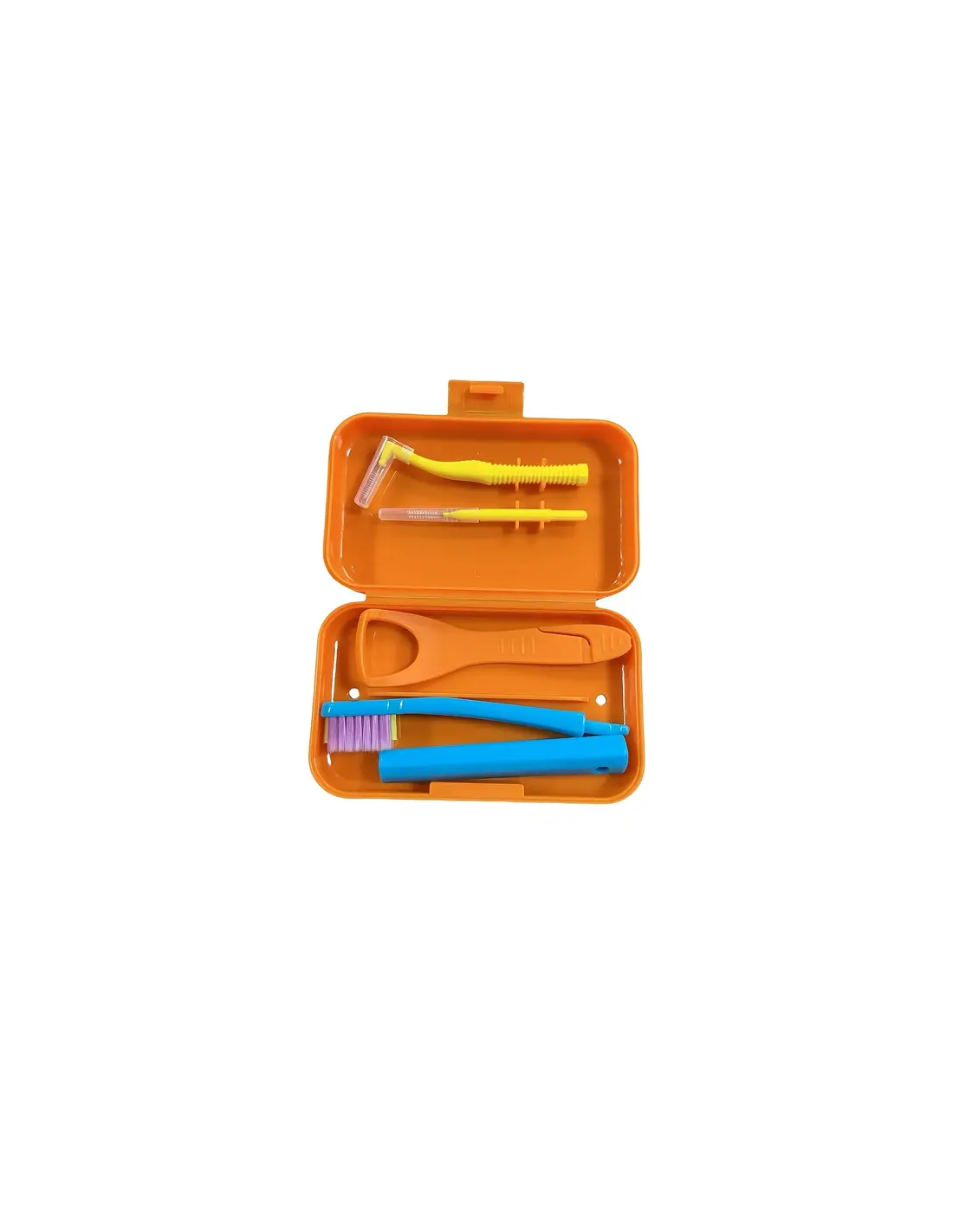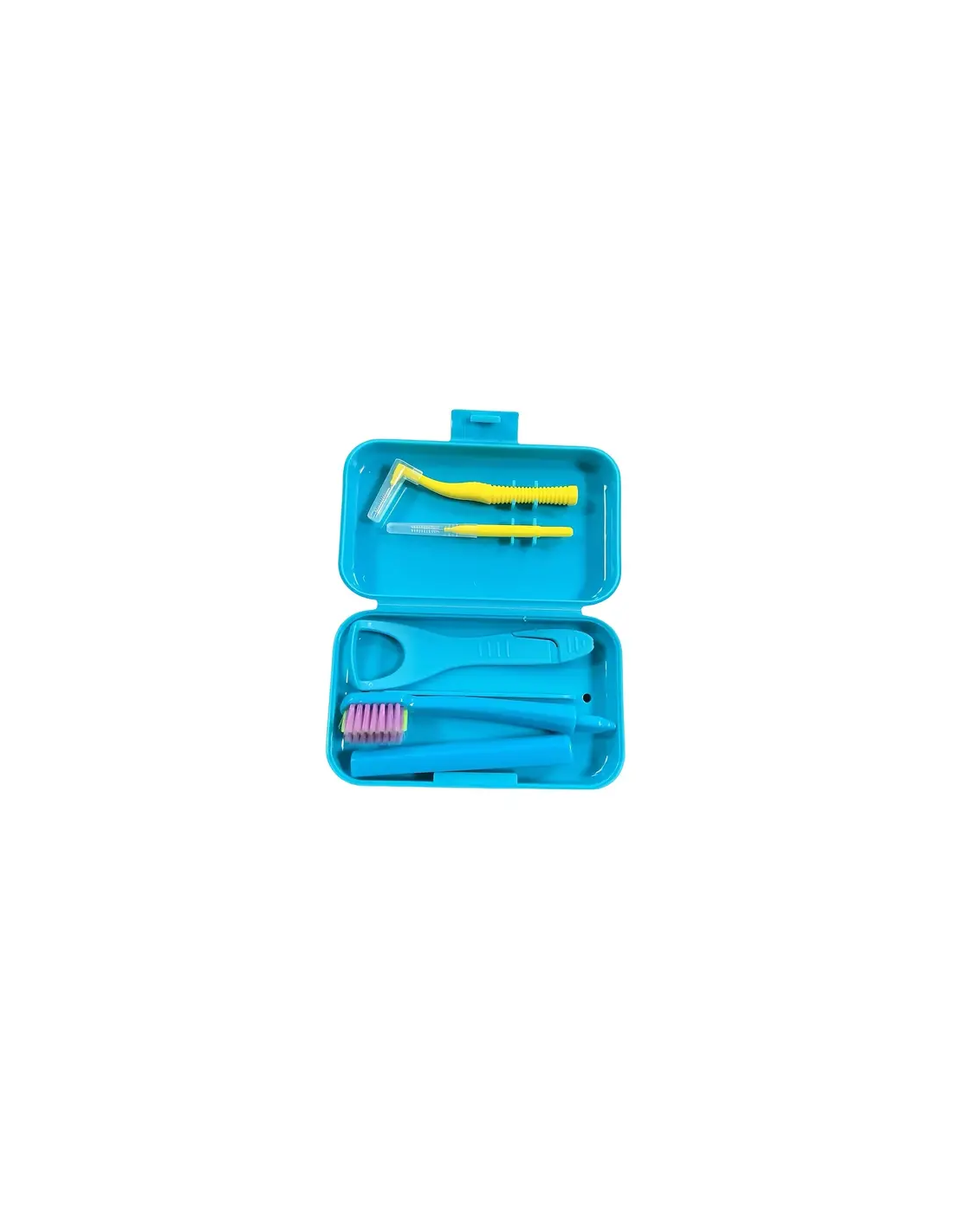 In una comoda custodia rigida e colorata, i piccoli trovano tutto il necessario per prendersi cura dei propri denti: spazzolino pieghevole, raschietto linguale, scovolino interdentale e filo interdentale.